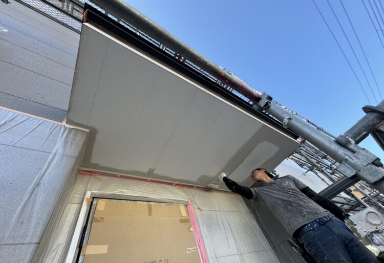 さて、姫路市の新築現場では、軒天の塗装工事が行われていました。