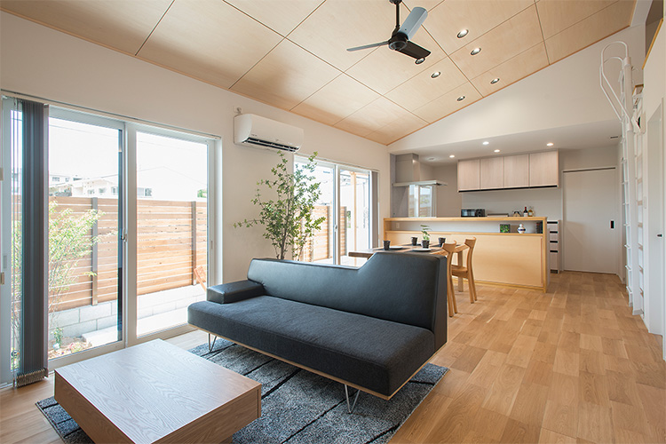 住空間建築設計では、透湿性に優れる構造用バネルを採用し、また第一種熱交換換気システムを搭載しているため、汚れた空気や湿気をしっかり排出することができ、家と空気を健康に保ったまま、断熱性を実現しています。