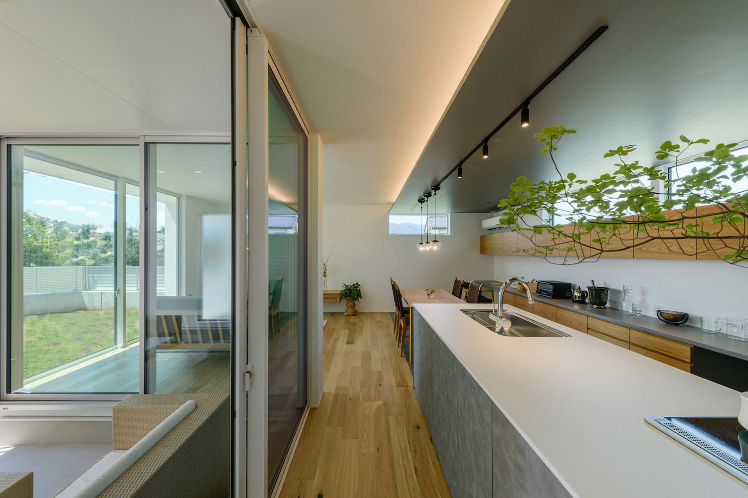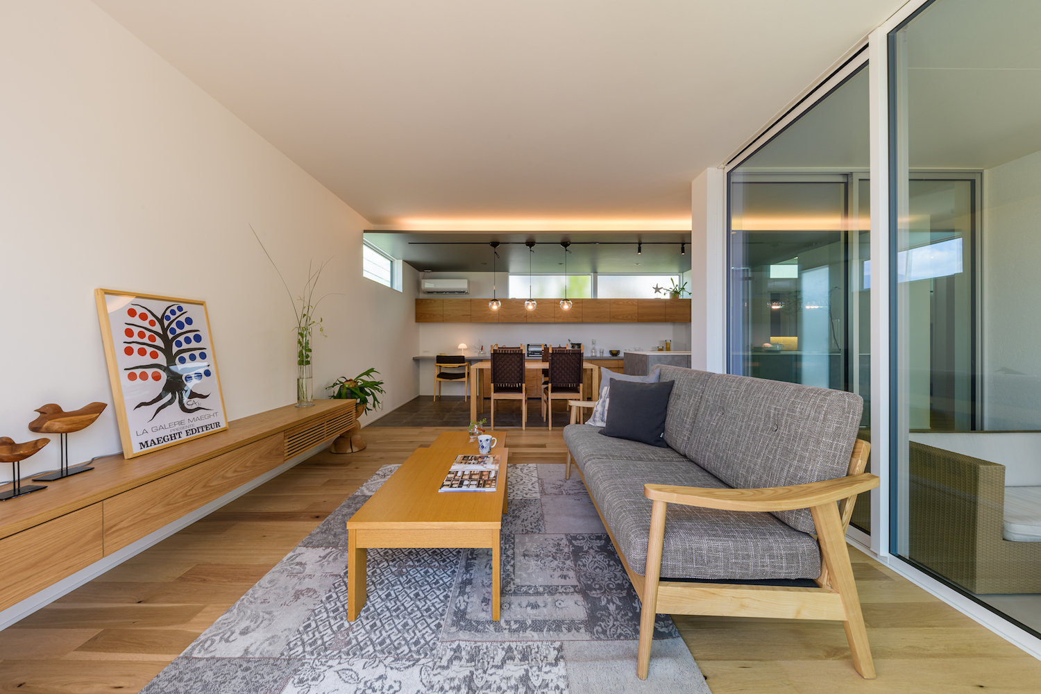 家族がつながる快適空間のすっきりした平屋