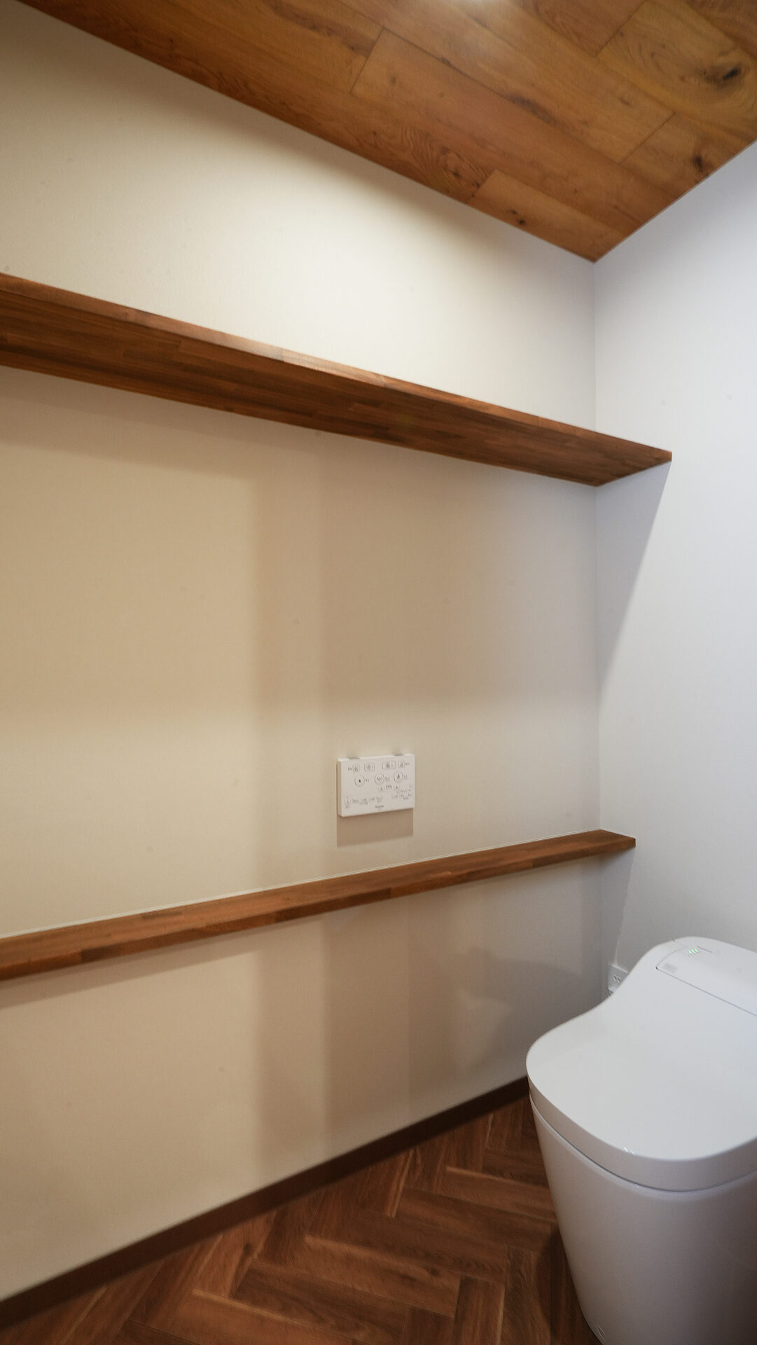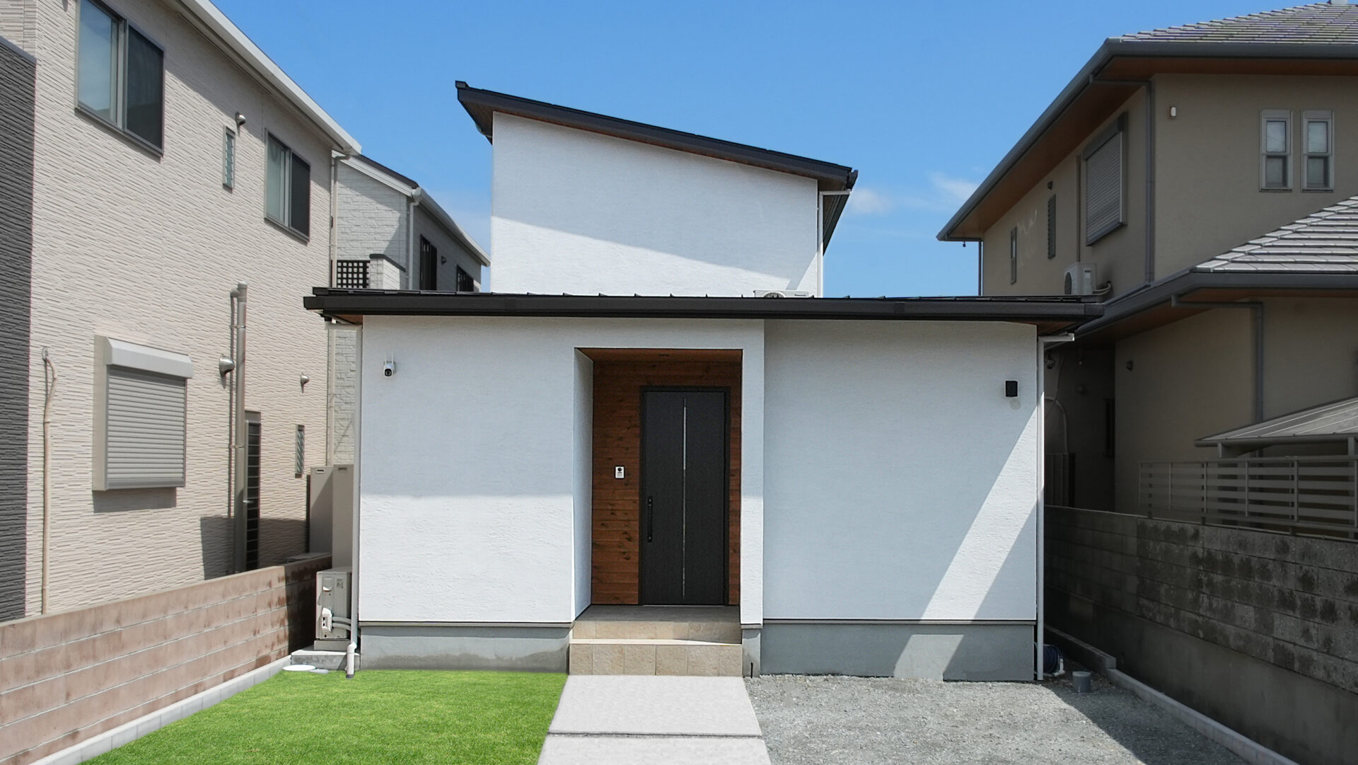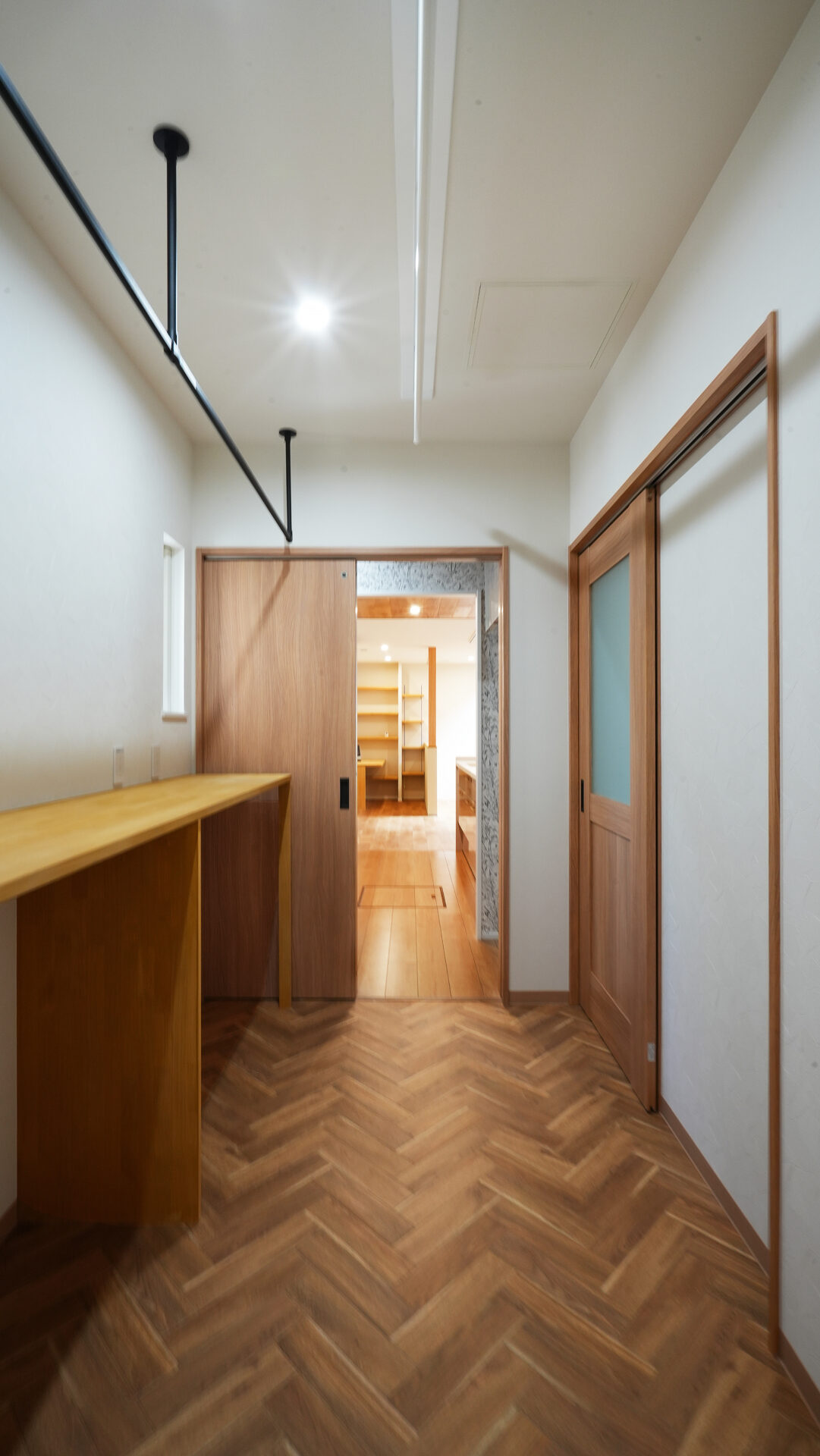 建築事例 HOME建築事例木の質感と土間がつくる自然を感じられる家 木の質感と土間がつくる自然を感じられる家 /Y様邸 床にはナラの無垢材を使用したフローリング。 さらにキッチン上の天井にはアクセントとして、同じく ナラを乱尺張りに施工。ダイナミックなのにまとまったLDK 建物に囲まれた狭小地でも、こだわるパッシブ設計