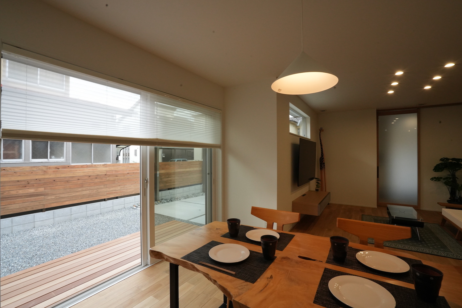 庭にはウッドデッキを設けて憩いの時間を