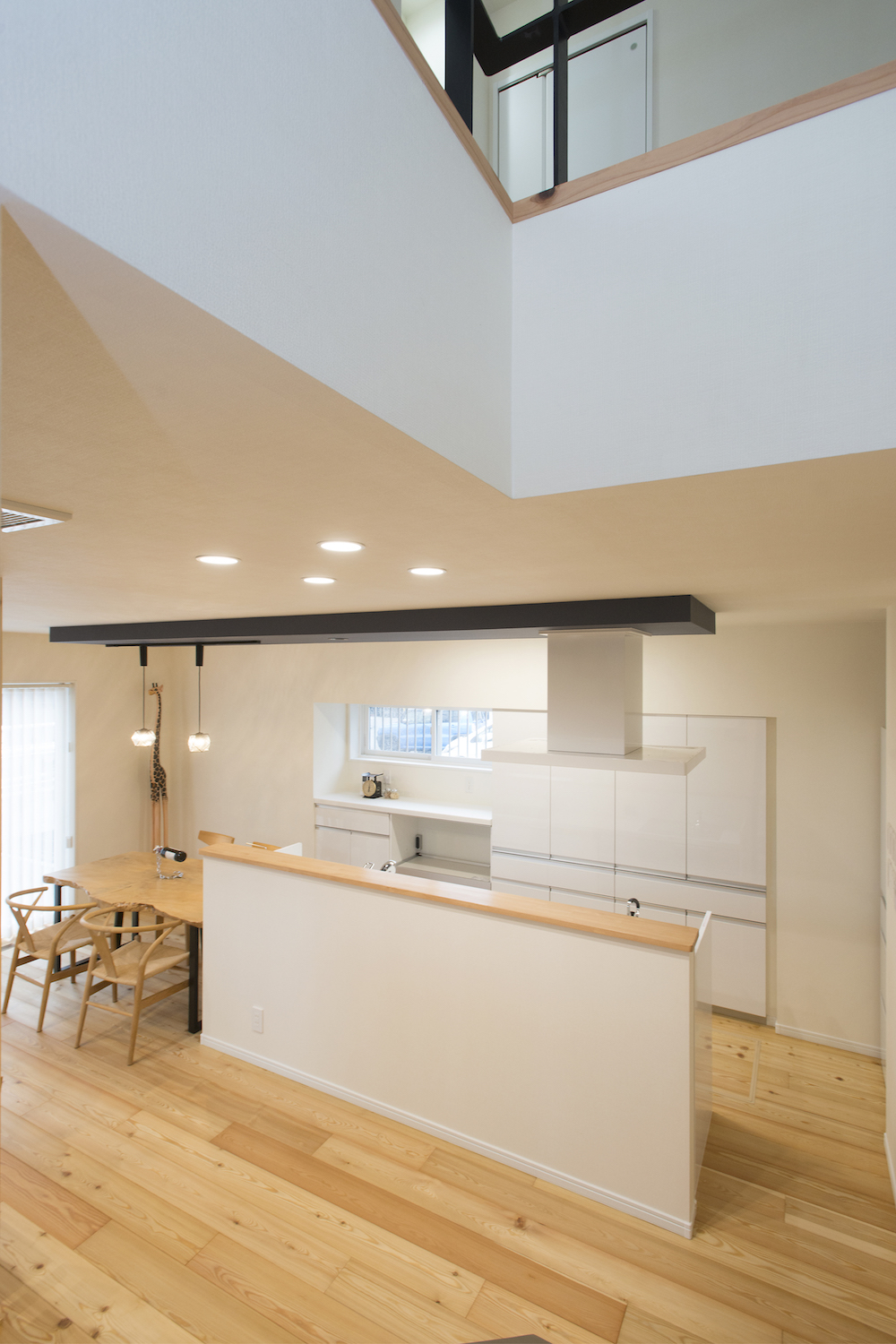 床材や柱に明るめの無垢の木を使用し、家具の色や質感も合わせて室内全体を落ち着きのある雰囲気に統一しました。