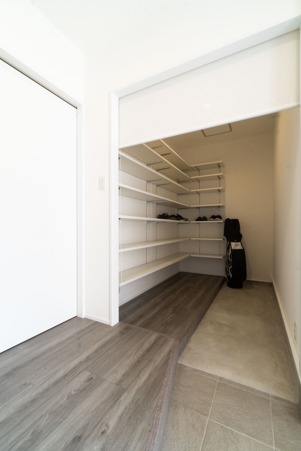 ゴルフバッグや自転車も置ける広々収納